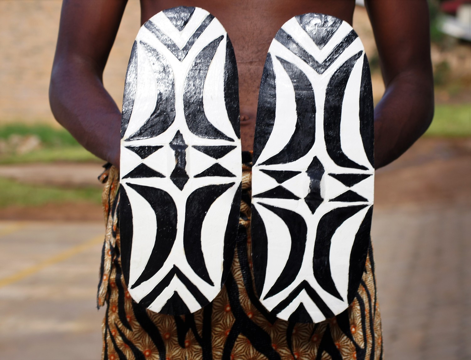 A small handcrafted African shield, used as decoration or symbolic art. Represents protection and cultural heritage.
